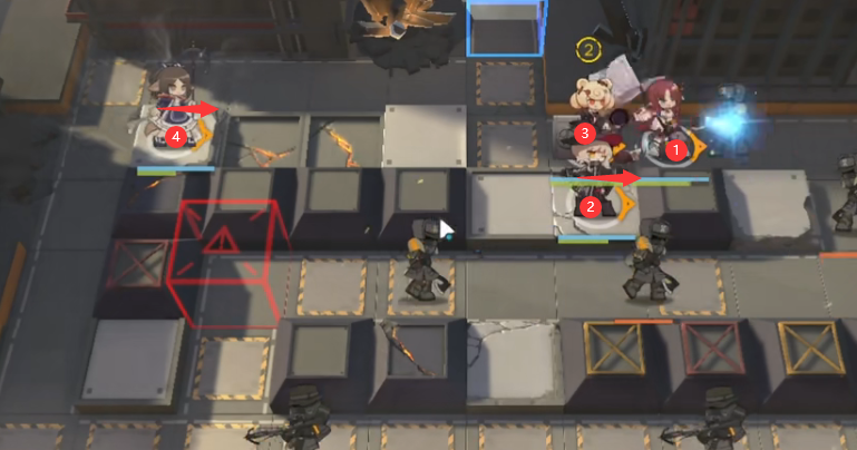 继续部署芳汀(向下) → 远山(向右)→ 慕斯(向下)