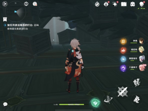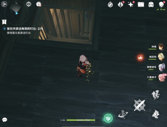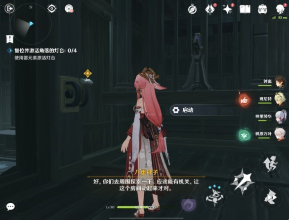 启动开关后调整位置并使用雷元素点亮