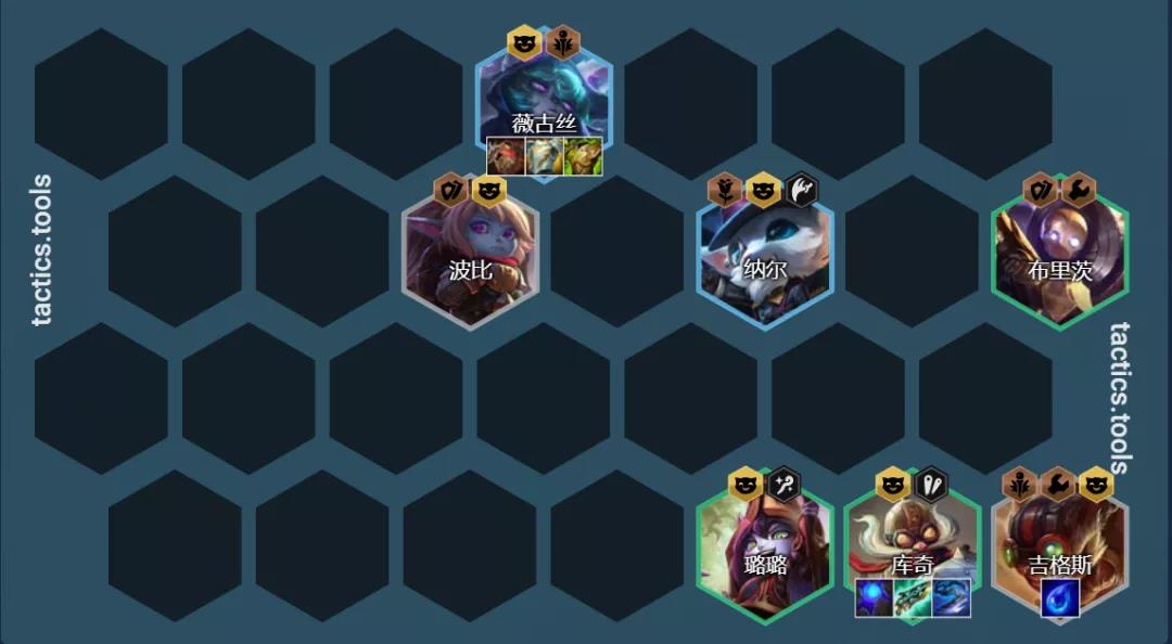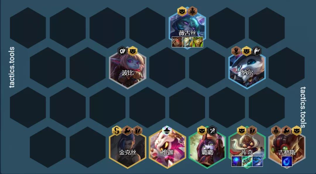 阵容组成:波比、吉格斯、飞机、璐璐、薇古丝、纳尔、金克斯、璐璐