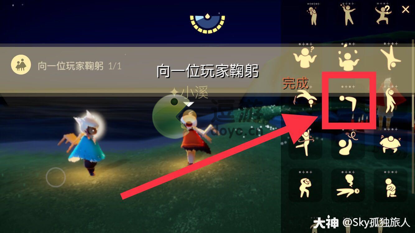 完成方法:点击屏幕上方中间动作栏 找到鞠躬动作 面对玩家 点击并完成鞠躬即可