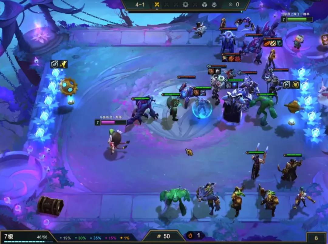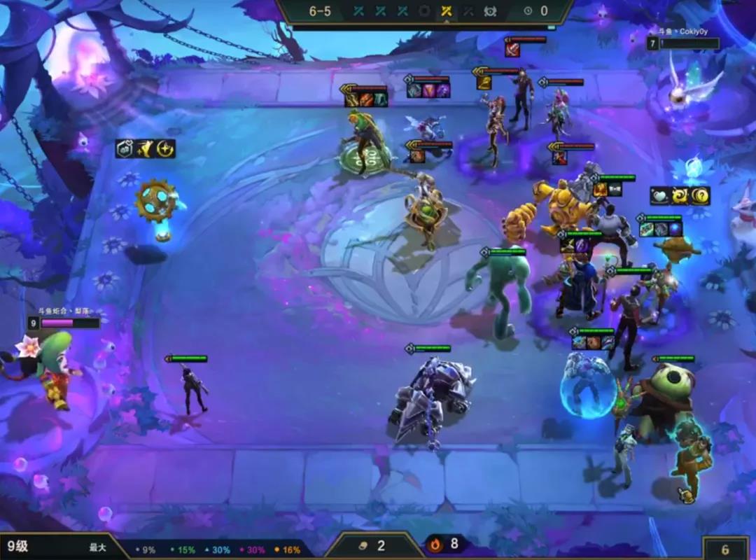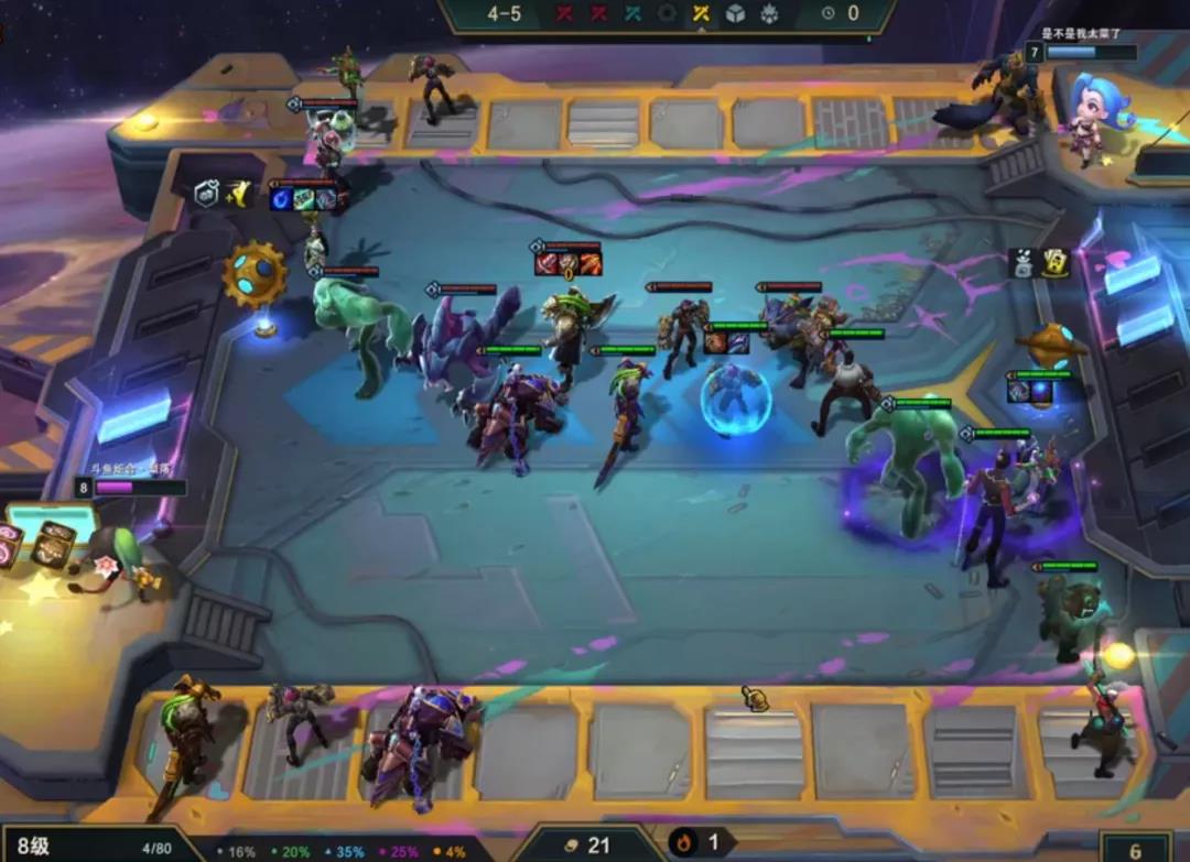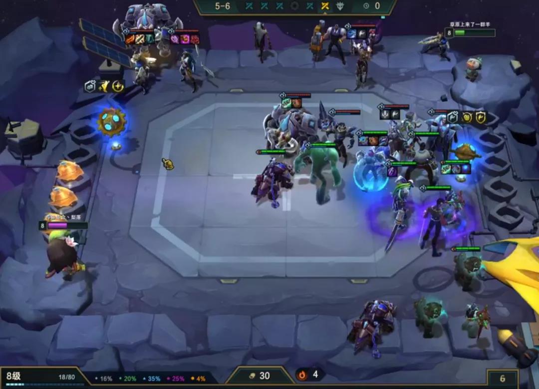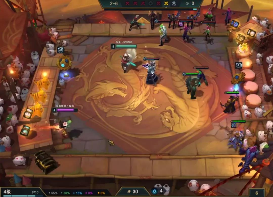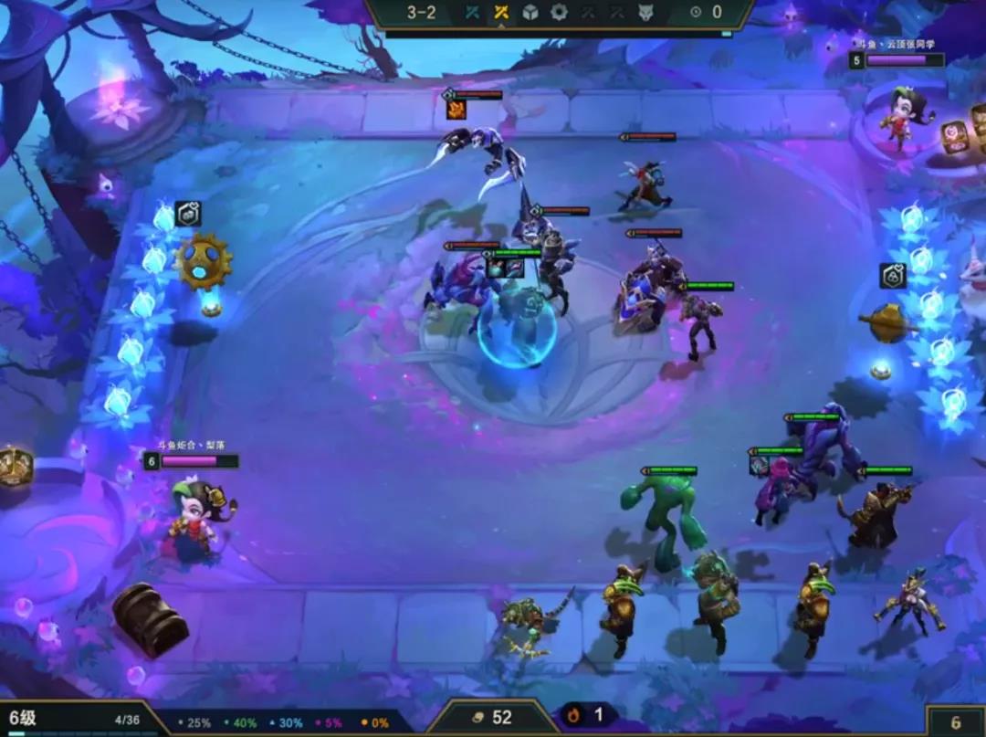 赏金的话3-5或者6就要启动跳人口收菜取钱了,取完钱不着急提升,因为是不纯卖血控血的赏金,继续卡着利息速冲8人口,准备组成阵容。