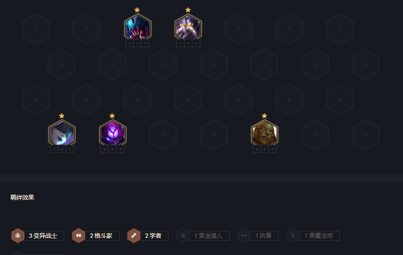 2阶段: 2-1升4人口,2-5升级5人口。打工阵容砍自身对局情况选择,如果有扎克可直接考虑4斗+任意拥鬼书收益高的棋子,如果没有可考虑3约+2保镖过渡,库奇带鬼书;也可考虑3赏金过渡,中期利用女枪收菜;也可直接2斗+3变异过渡,蚂蚱带鬼书。