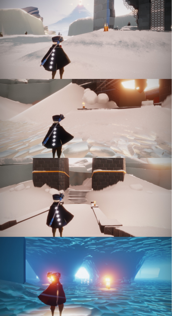 步骤:进入霞谷后,往前方滑行,来到滑冰场下方收集蓝色光芒