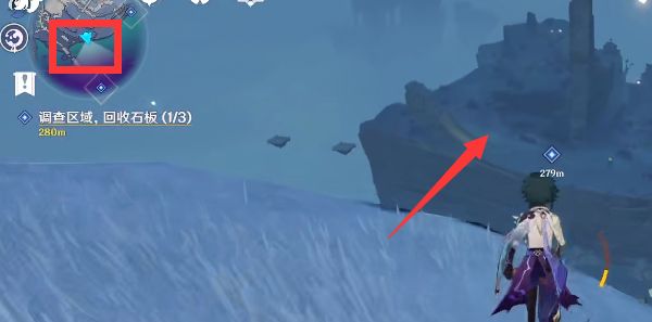 3、石门内共有三处破损的石板,收集完毕后完成回收石板任务1。