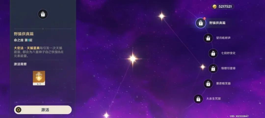二命:通过对比,E技能伤害有小幅度提升,但是攻击范围提升幅度非常大,八重神子的核心命座,我的理解是这个命座能够防止漏伤害,杀生樱伤害基本是能够保证击中到怪物了。