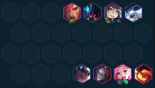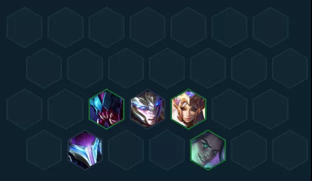 过渡推荐:男刀+梦魇+猪妹+皇子+挖掘机组成3海克斯2格斗2刺客2强袭,前期海克斯白嫖护盾很适合打连胜保血,装备先给男刀或梦魇打工。