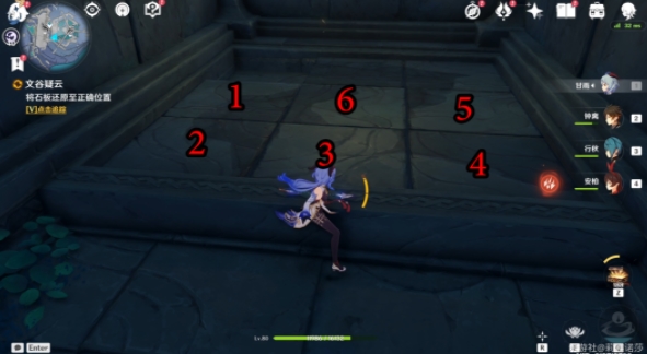 返回传送点,来到任务目得地,这里开启机关后有一个解谜。解谜方法直接按照上图123456的顺序来开启即可。