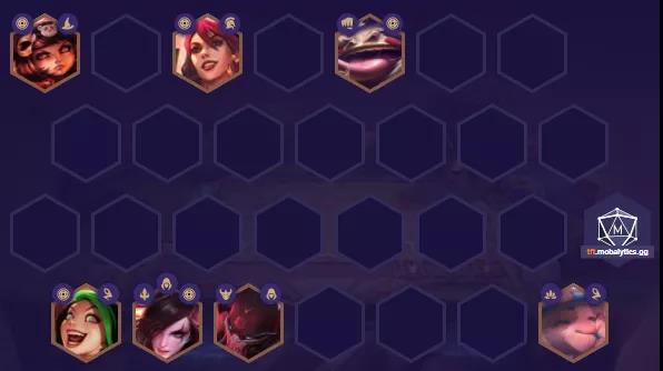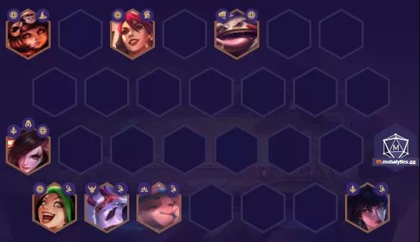 后续到了五阶段直接升上八人口,搜出烬并且把派克换成豹女组成四神射手羁绊,保障金克丝的输出,慢慢提升阵容整体质量到三星即可,注意金克丝和烬的站位不要被刺客抓。