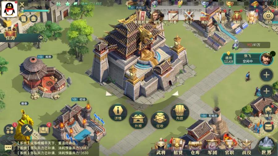 1、在卧龙吟2的新手期中,我们最需要注意的一点就是升级建筑,尤其是内政厅这个建筑。