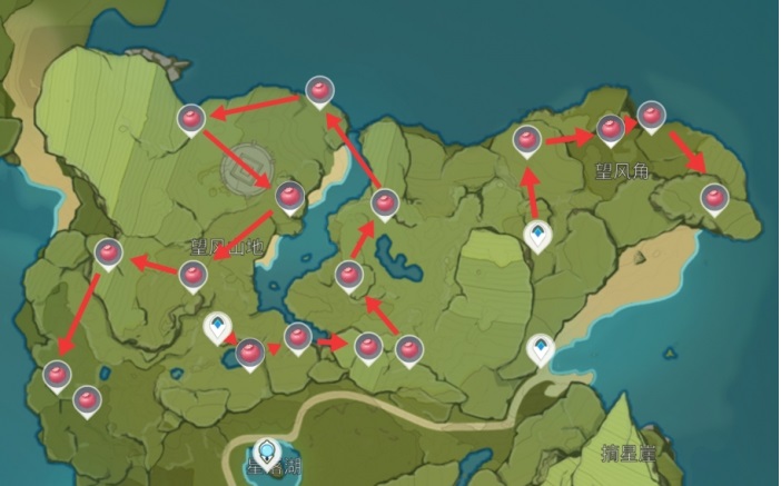 1、分布在地图的蒙德区域,望风角和望风山地附近;