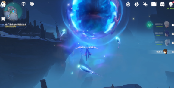 需要我们在「常夜」状态下,靠近目标位置中间的池水,随着冥鱼一路上升,我们就会被送到高空中的传送虫洞,来到八衢彦之地。