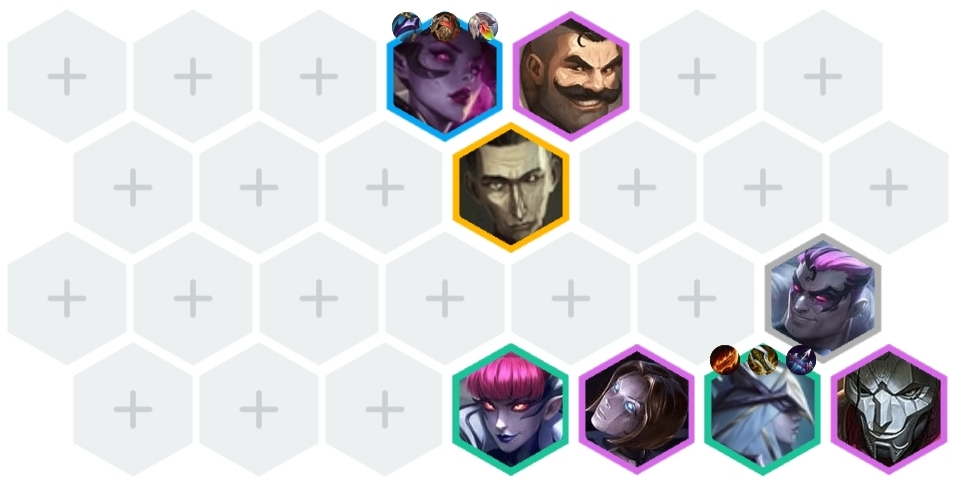 莫甘娜布隆一起顶前排,注意调整布隆的位置确保大到更多人,寒冰位置注意防勾,装备好尽量做个女妖防控。打泽丽可以跟她放同一边更舒服,寒冰莫甘娜3星基本不虚任何阵容