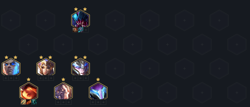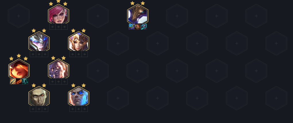 四阶段的4-1升七,看自身血量情况,有压力就搜出6海克斯2格斗3强袭的基本阵容,能锁血后立刻停手攒钱直接冲八。反之则直接上八搜,阵容需求四费卡较多。