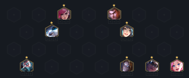 前期主要以连胜为主,前期的过渡思路比较适合的阵容有极客发明家以及海克斯阵容过渡,这个开局能够拿到什么就用什么打工,尽量连胜不要连败,刀妹没有3名流羁绊而且没有2星,真的非常拉。