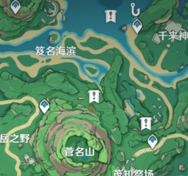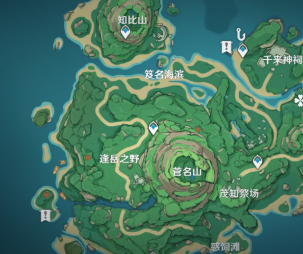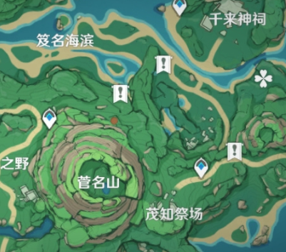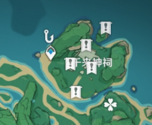 任务一中,在图上角色处在的位置有一个海螺, 捡起后会出现幽灵岷伽,她会告诉你她的哥哥离开了鹤观,留下来藏宝图碎片,在其他三个地方寻找海螺可获得其他藏宝图碎片,集齐四个后在七天神像后可以再次找到她,和她对话后藏宝图会合成,指示.出宝藏位置(菅名山山底)可以挖出一个宝箱,里面有三十原石。