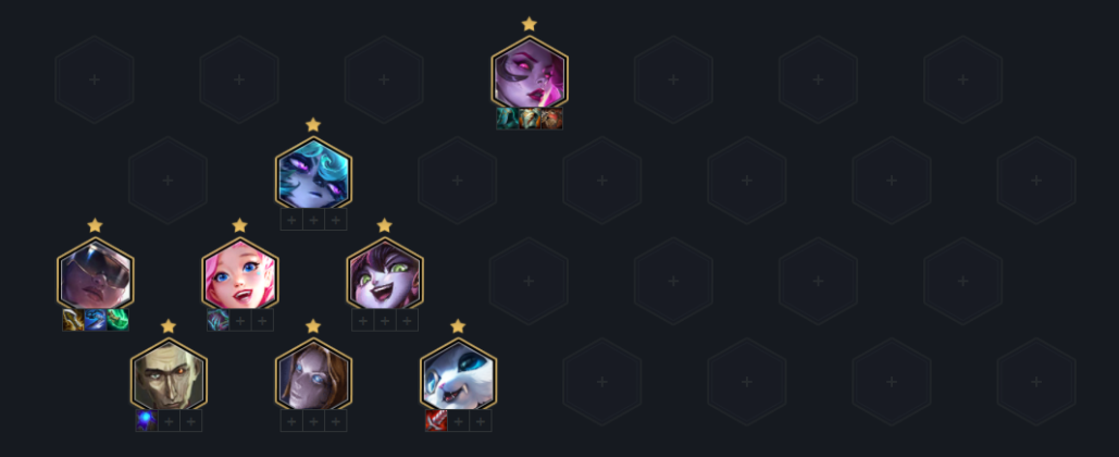 前期先看一下名流的位置和赛娜来得早不早,再决定玩不玩此套阵容,名流后面2排任意位置都可以玩,前面2排就不建议玩了。