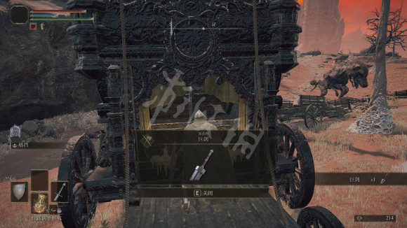 从风暴山丘破屋往右上角一直跑,习战者破屋-圣人桥-水唤村外-熏火教堂-腐败旁露台-奇列姆废墟,旁边的马车宝箱打开就是巨剑,要求31力量,12灵巧,重量23。