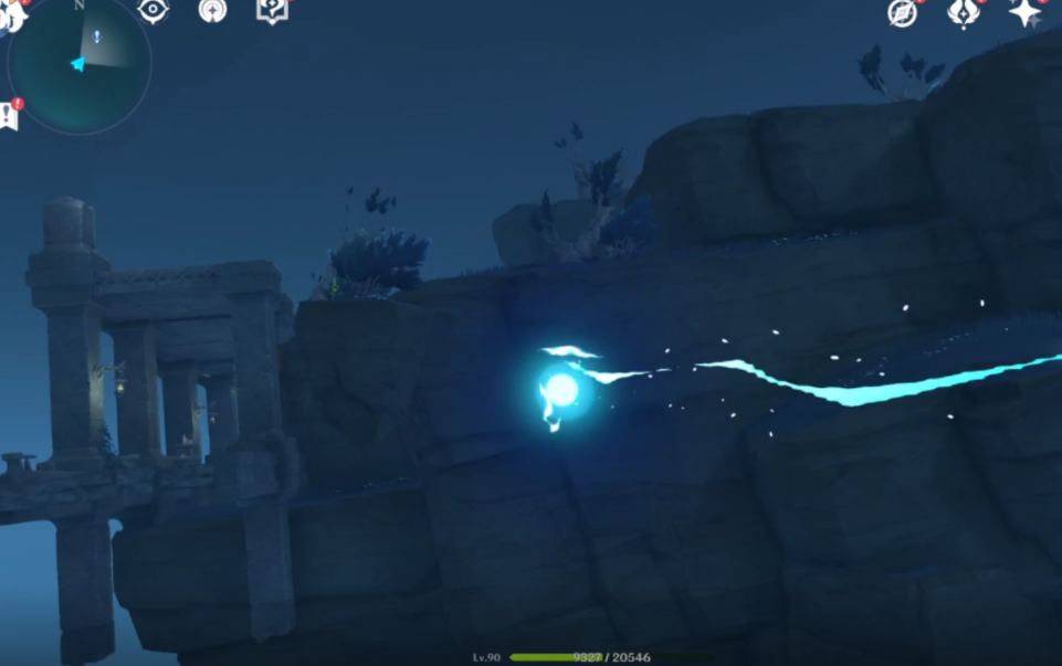 先来到大日御舆上方的传送点,然后飞到大日御舆上方的浮空岛上