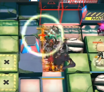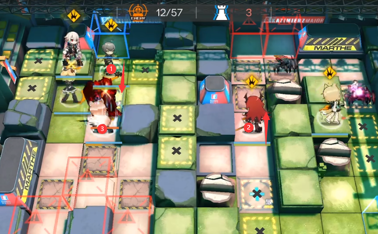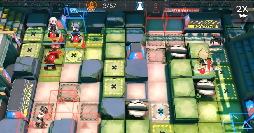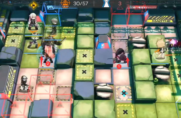 2.费用足够后,先锋替换远程近卫(向下)→ 右边部署史尔特尔