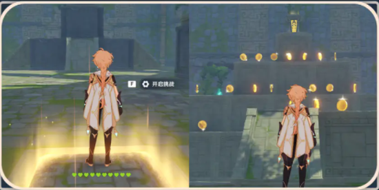 在挑战的过程中,有些机关会使得旅行者受到元素附着,有些会削减一定数量的生命点。旅行者需要注意机关启动时间,躲避各类陷阱。