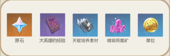 活动奖励活动期间,帮助冒险家协会调查奇异的秘境,完成指定任务即可获得原石、大英雄的经验、天赋培养素材、精锻用魔矿、摩拉奖励。