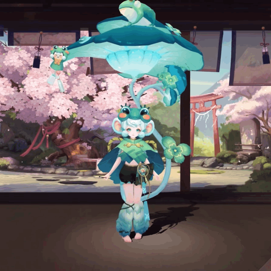 伞饰:原本悬挂在二重伞上的花纸变成了小小风铃和四叶草,随灵活的动作而相互敲击着,雨打林间,铃声响起。