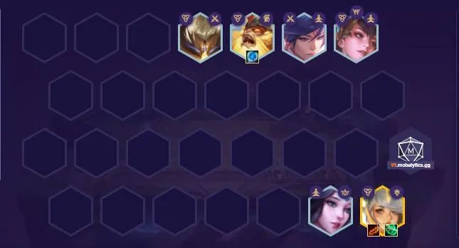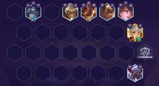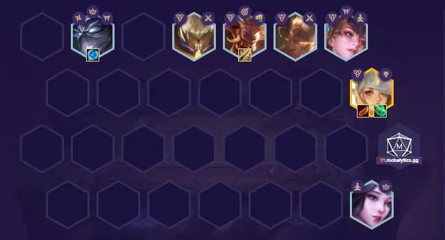 后期升八找盲仔和永恩补全阵容,如果是玉剑天选后期单补永恩凑宗师,基兰换风女也是二玉剑二秘术,基兰复活增加拉克丝容错,三宗师给拉克丝充足的叠加攻速时间。