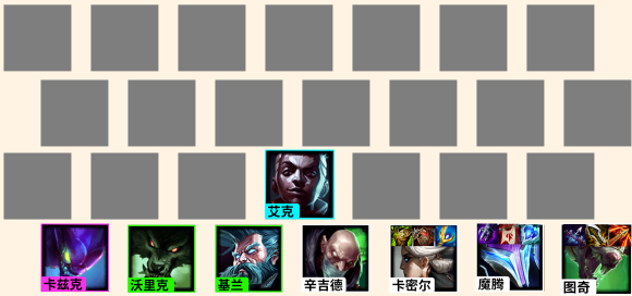 图奇、魔腾、辛吉德、卡密尔、沃里克、基兰、艾克、卡兹克