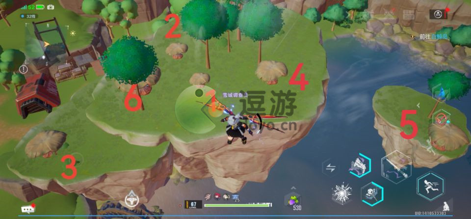 ①在浮空岛的下方还有另一组蘑菇,也是六个,下面是跳法顺序。