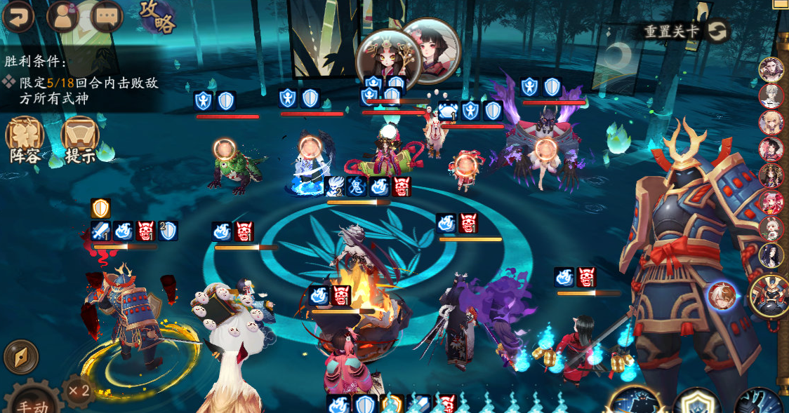 后续切自动即可,步骤为:鬼切释放三技能给芋圆,鬼吞普攻对面大天狗/蟹姬,鬼切再次收尾即可通关。