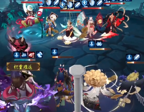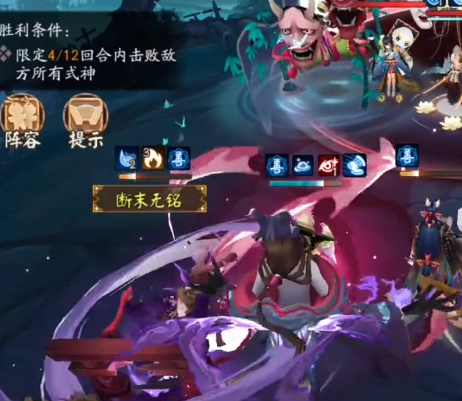 第五回合:我方御怨般若使用二技能'积重难返',目标敌方式神。