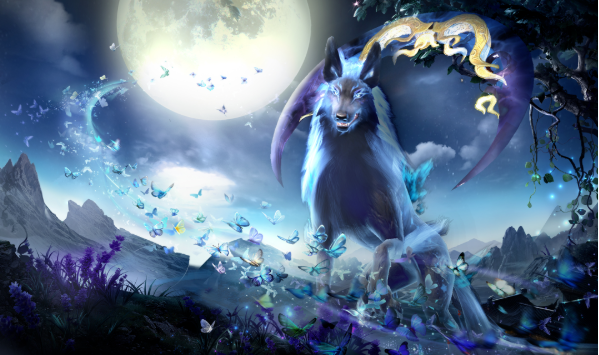 为了让天狗和旅者记忆中的天狗形象靠拢,我们更多开始采用了天狗与月亮之间的传说,除此之外,我们也结合了古代民俗学者郭璞先生的注释“天狗所止地尽倾,余光烛天为流星,长数十丈,其疾如风,其声如雷,其光如电。”,