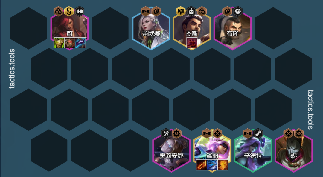 没有泽丽不建议硬玩,泽丽是一样5费卡,当前版本8人口5费卡的概率是4%,基本很难能够在8人口找到2星泽丽,除非前期有2个妮蔻;