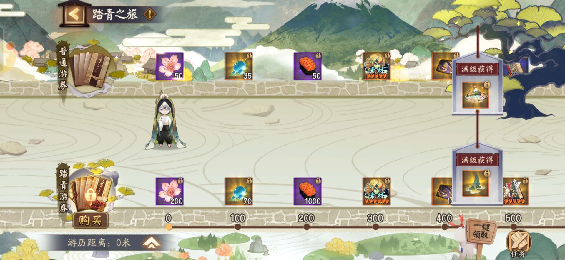本次活动的道具比较少,其中门票每天系统赠送50张,商店可用勾玉购买30张,花合战可以领35+70张(免费的35+氪金的70),商店礼包每日10张。