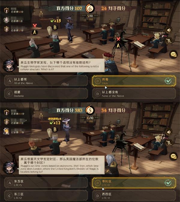 新课堂<麻瓜研究课>,形式类似魔法史课堂,也是队伍之间进行问题抢答竞赛。只不过麻瓜研究课的问题是现实生活的百科知识。