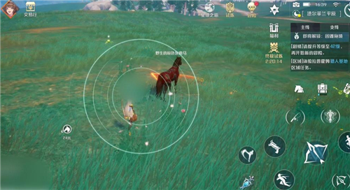 当看到套索图标后,迅速点击套马,然后角色就会跳到马背上试图驯服野马。