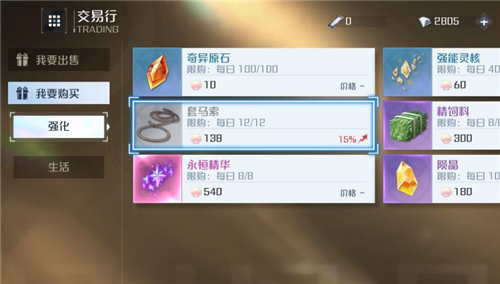 首先要去交易行中购买套马索这个消耗型道具,没有套马索是抓不了野马的。
