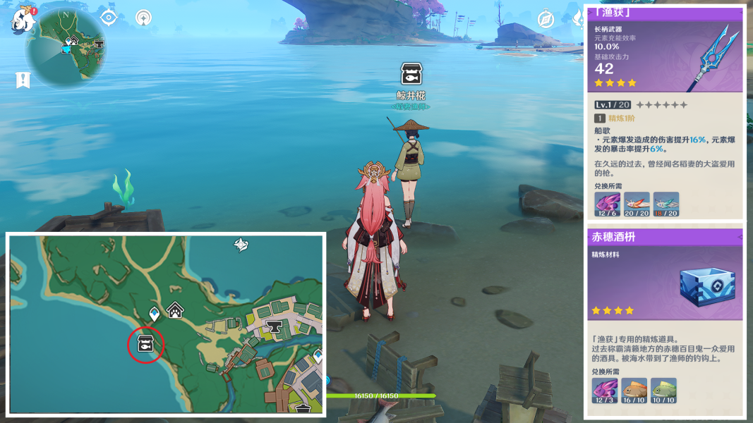 兑换地点在稻妻城门口,鲸井椛处,总共需要 雷鸣仙18只,靖假龙20只,金翅假龙20只,炮鲀40只,苦炮鲀40只