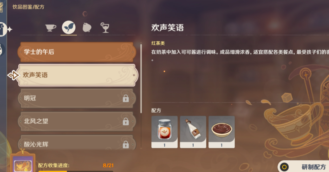 街机cn 来源:厂商 发表于:2022-03-10原神学士的午后怎么配?在原神2.5新活动曲生酌微梦中的酒馆轶事中,玩家们需要根据角色的要求调配饮品,而且饮品有各种配方,那么学士的午后该怎么配呢?和小编一起来看看吧!