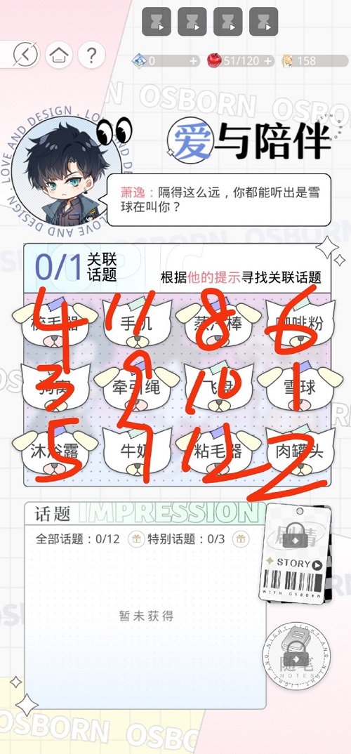1、根据提示按照正确顺序寻找话题可以获得小熊星座*20,并且解锁下一个话题。