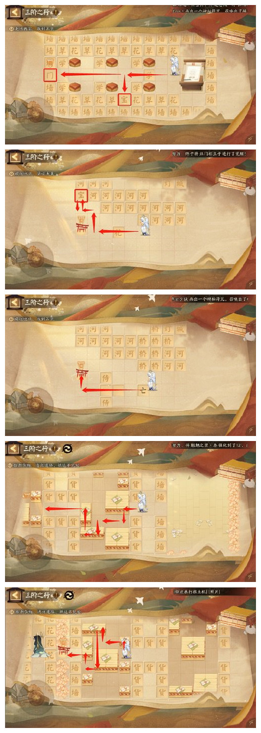 街机cn 来源:厂商 发表于:2022-03-11《阴阳师》隐士山行是游戏中的新活动,其中每天都会有一个解密关卡需要玩家的头脑进行通关,今天已经来到了三阶了,也许会有一些小伙伴还不知道怎么解开今天的关卡谜题,下面小编就给大家整理了关于三阶之行的通关攻略,一起来看看吧!
