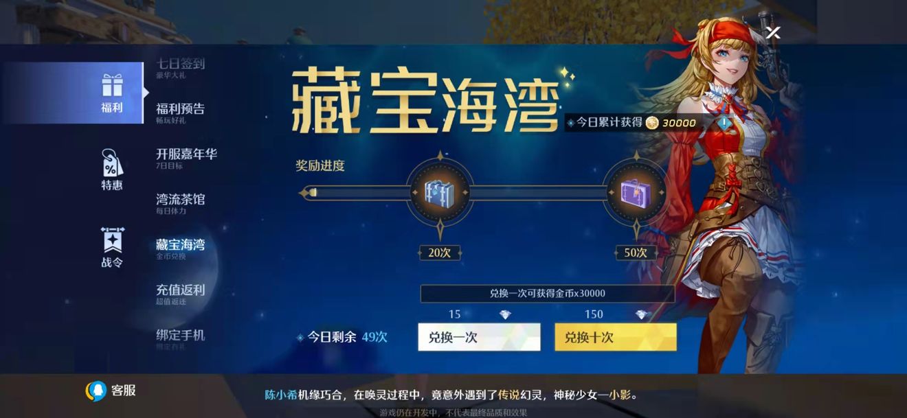 藏宝海湾不仅可以解决部分冒险家钻石有余而金币不足的问题,最重的是,它!能!白!嫖!每日首次兑换是免费的哟~冒险家们可不要忘记兑换了!顺带一提,兑换20/50次金币后,还能额外获得金币哦~