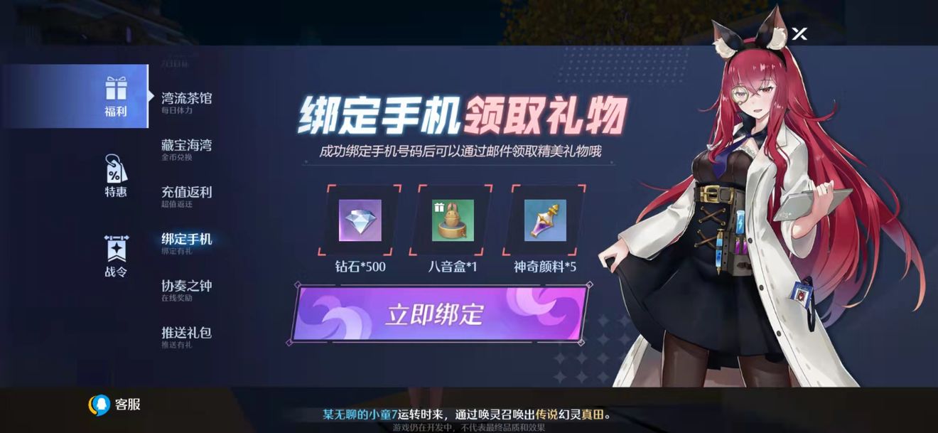 绑定手机轻松领取钻石*500、八音盒*1以及神奇颜料*5!冒险家们快快行动起来吧~