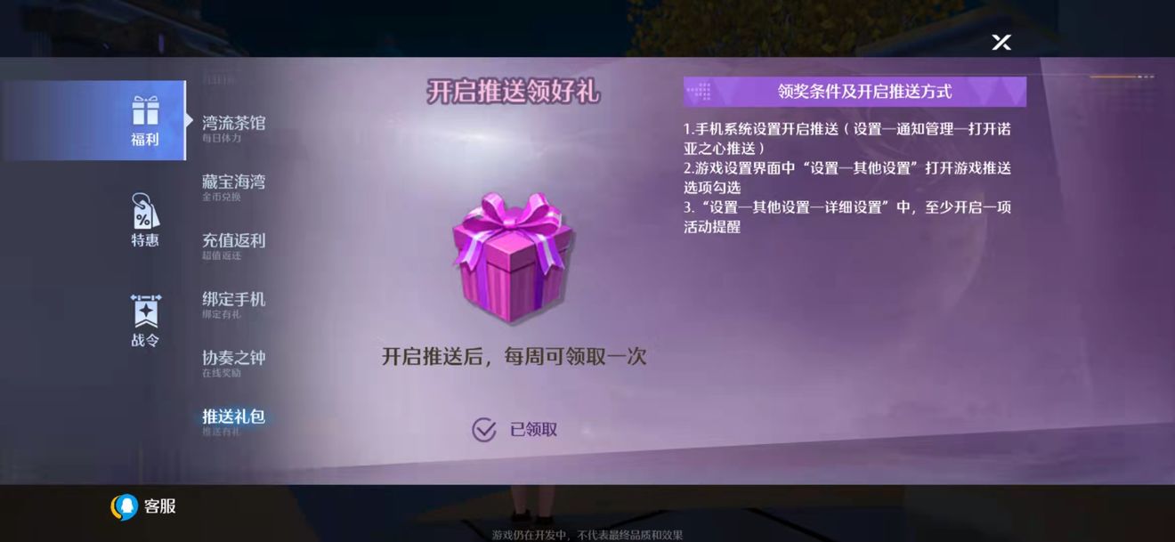 九、【推送礼包】轻松几步让诺亚之心发福利~