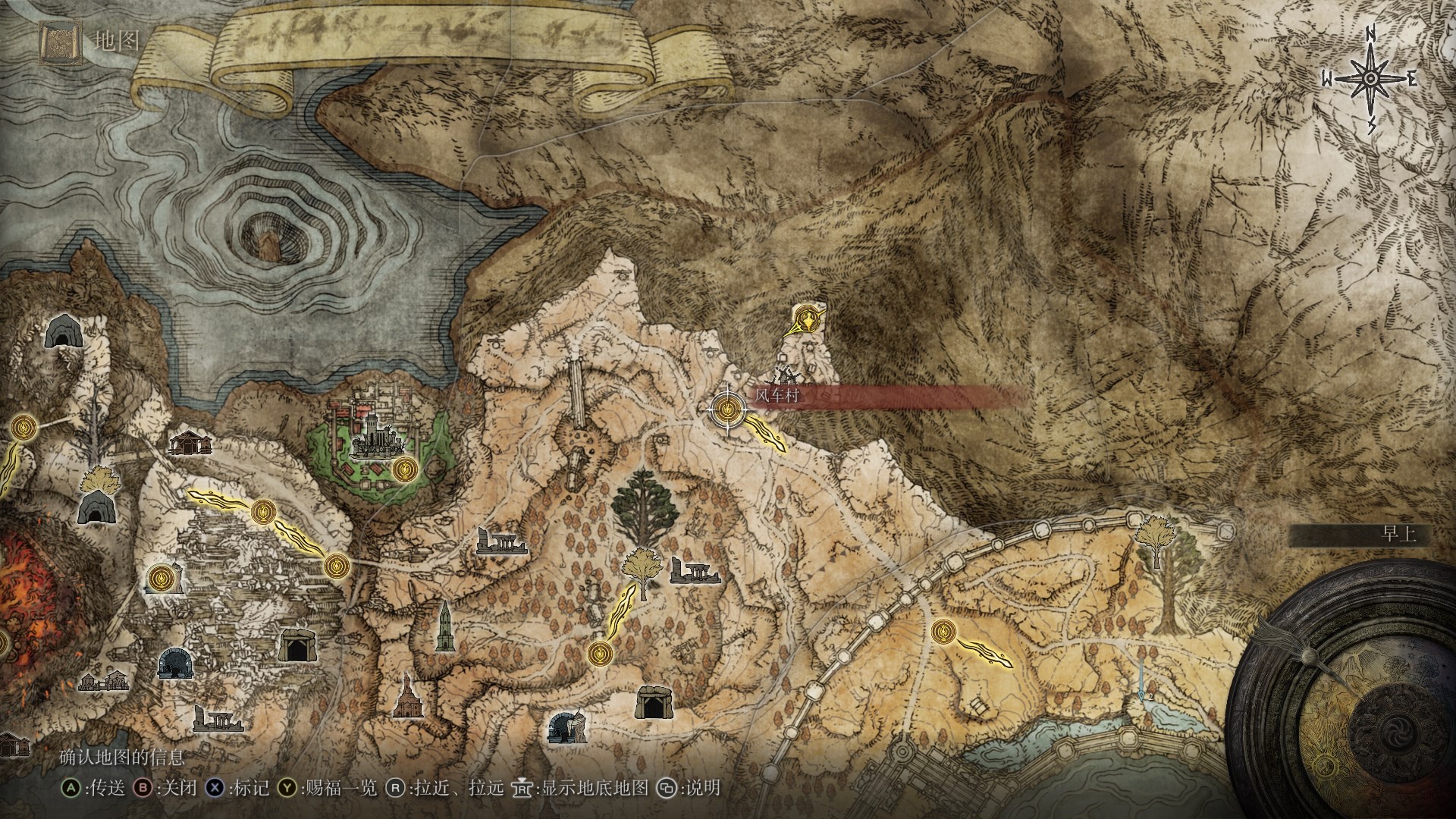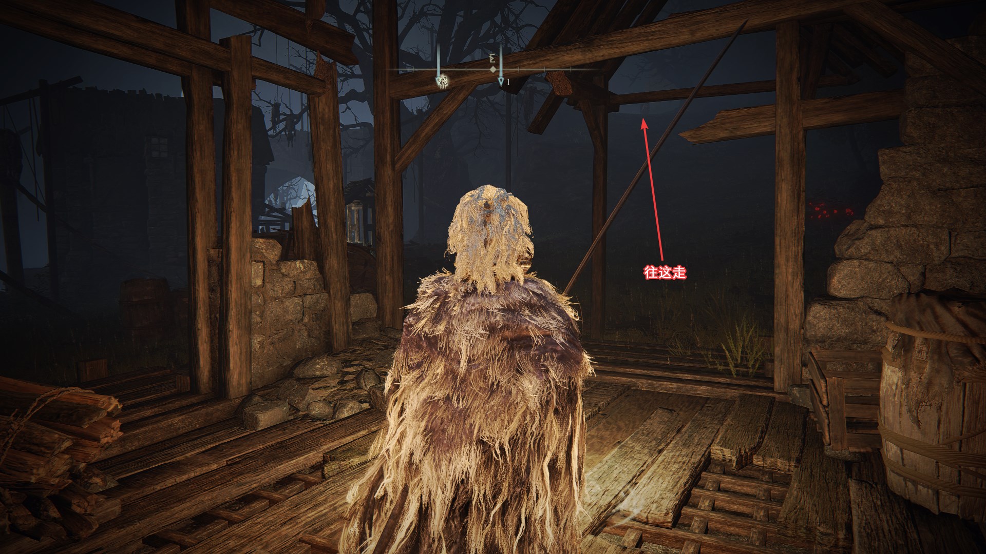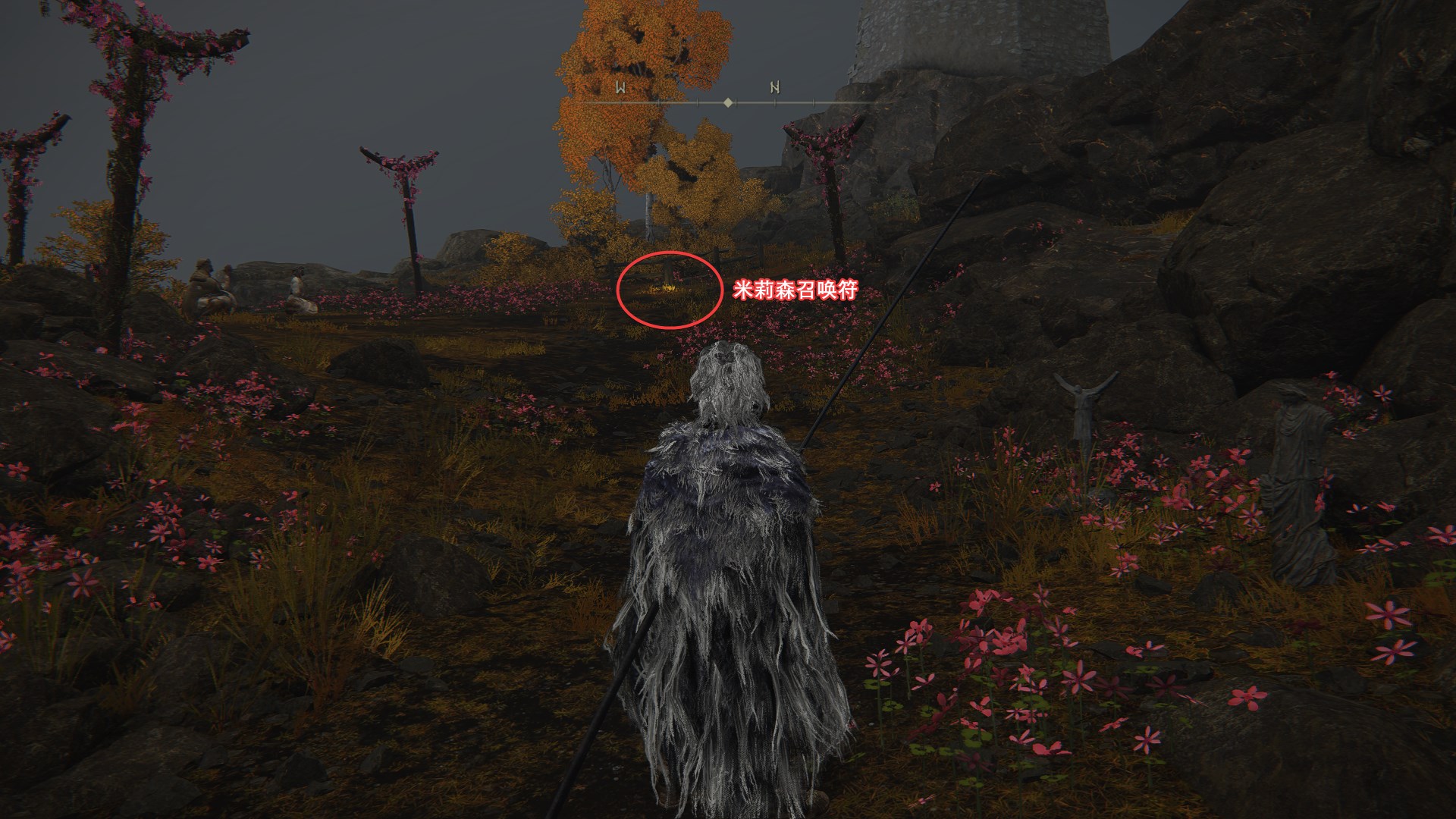 2.来到近黄金树的山丘,向北走来到日荫城,从日荫城(城墙)出发,如图找到女武神的义手,返回山丘,和米莉森对话交出义手。(回去找格威有新魔法和新对话)