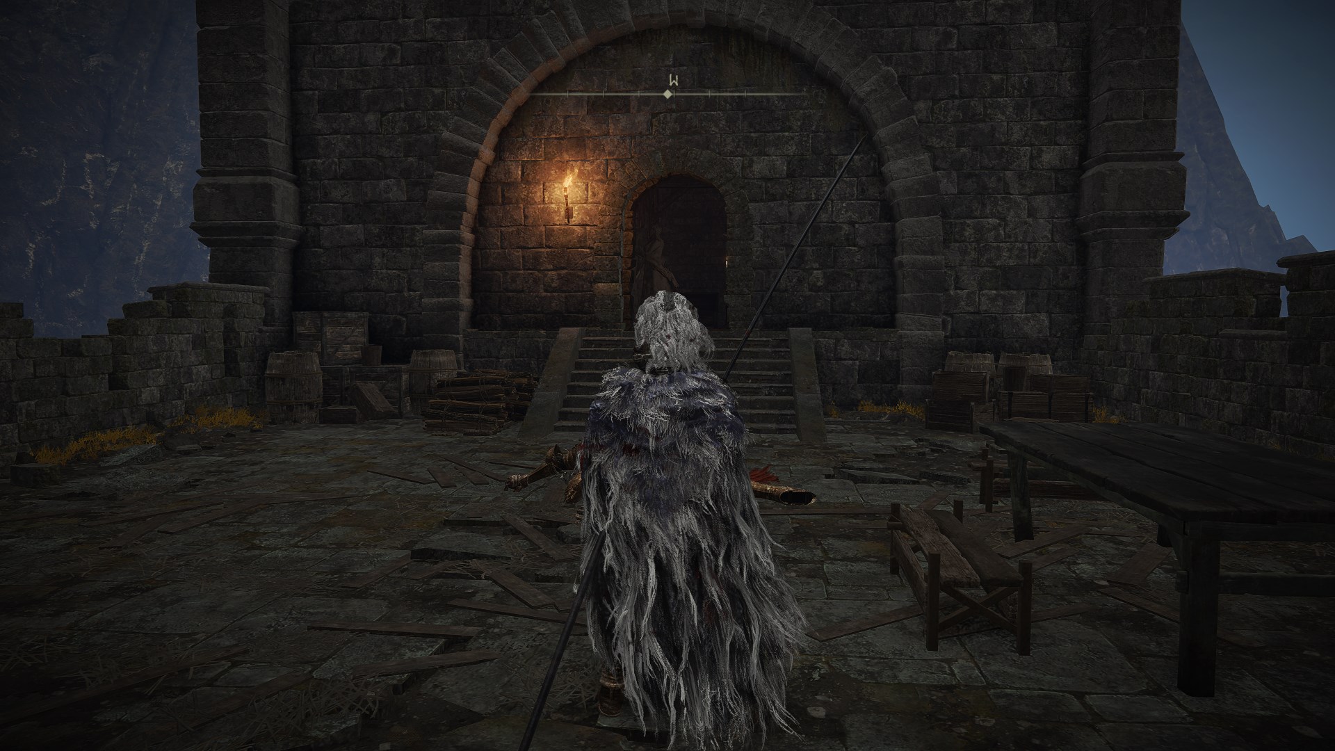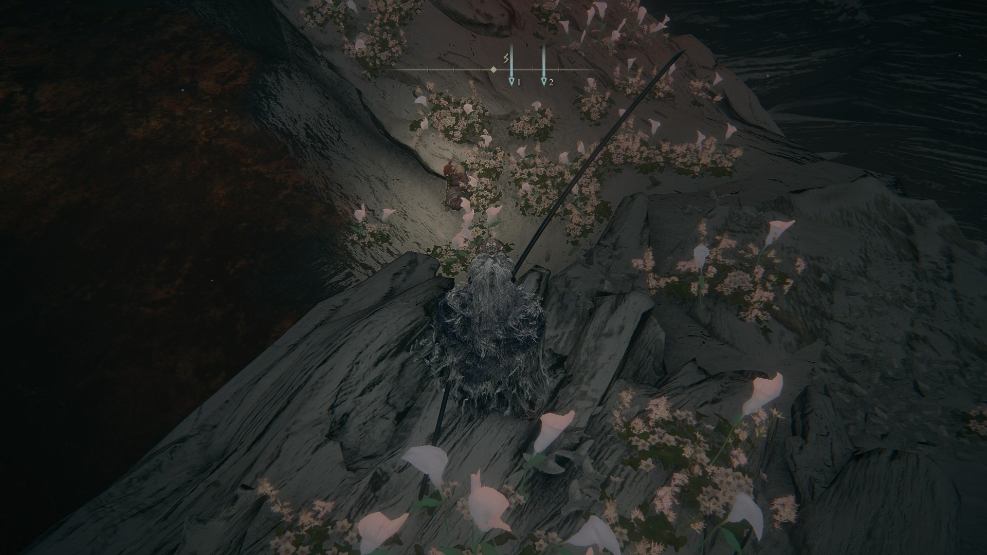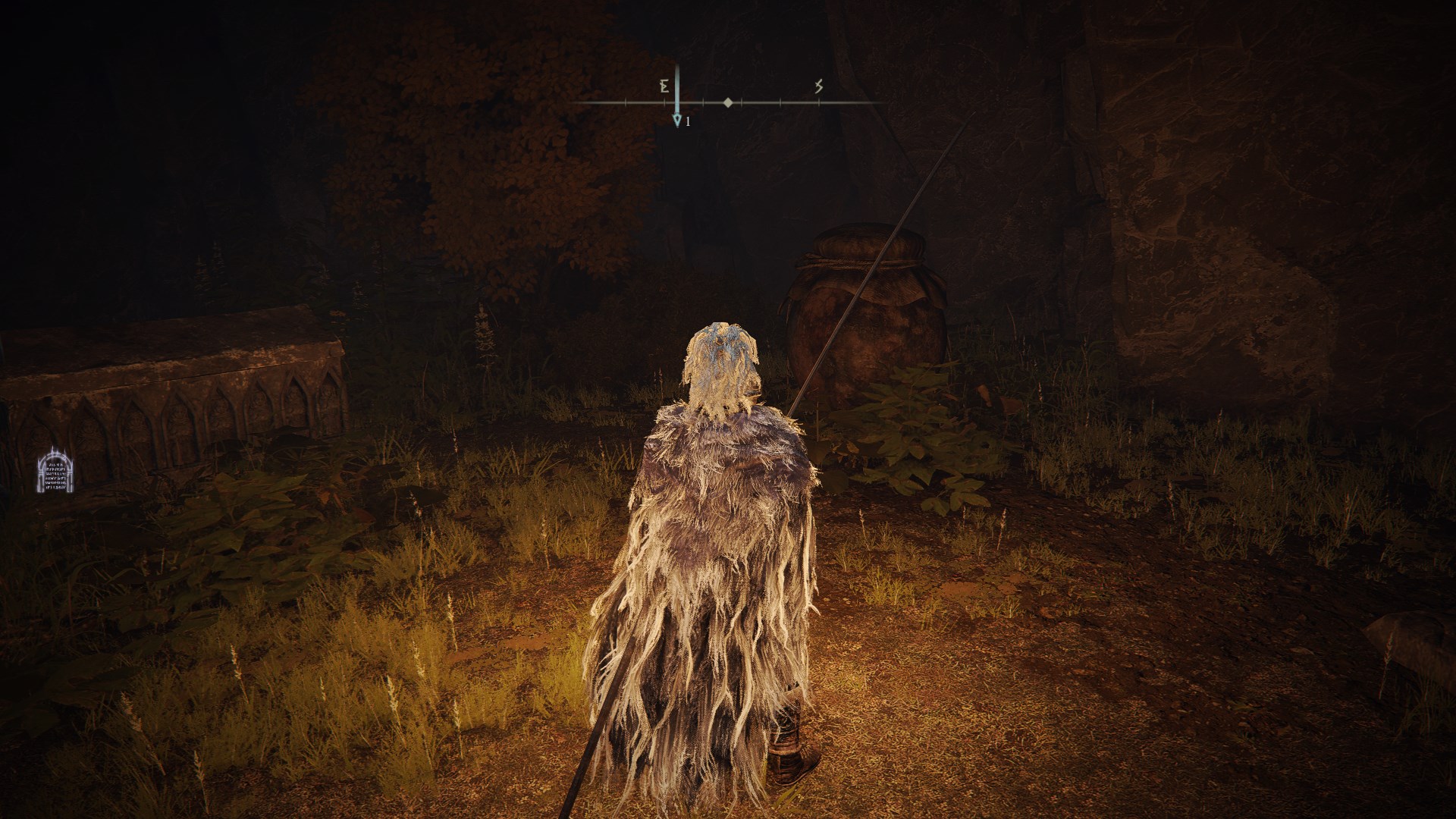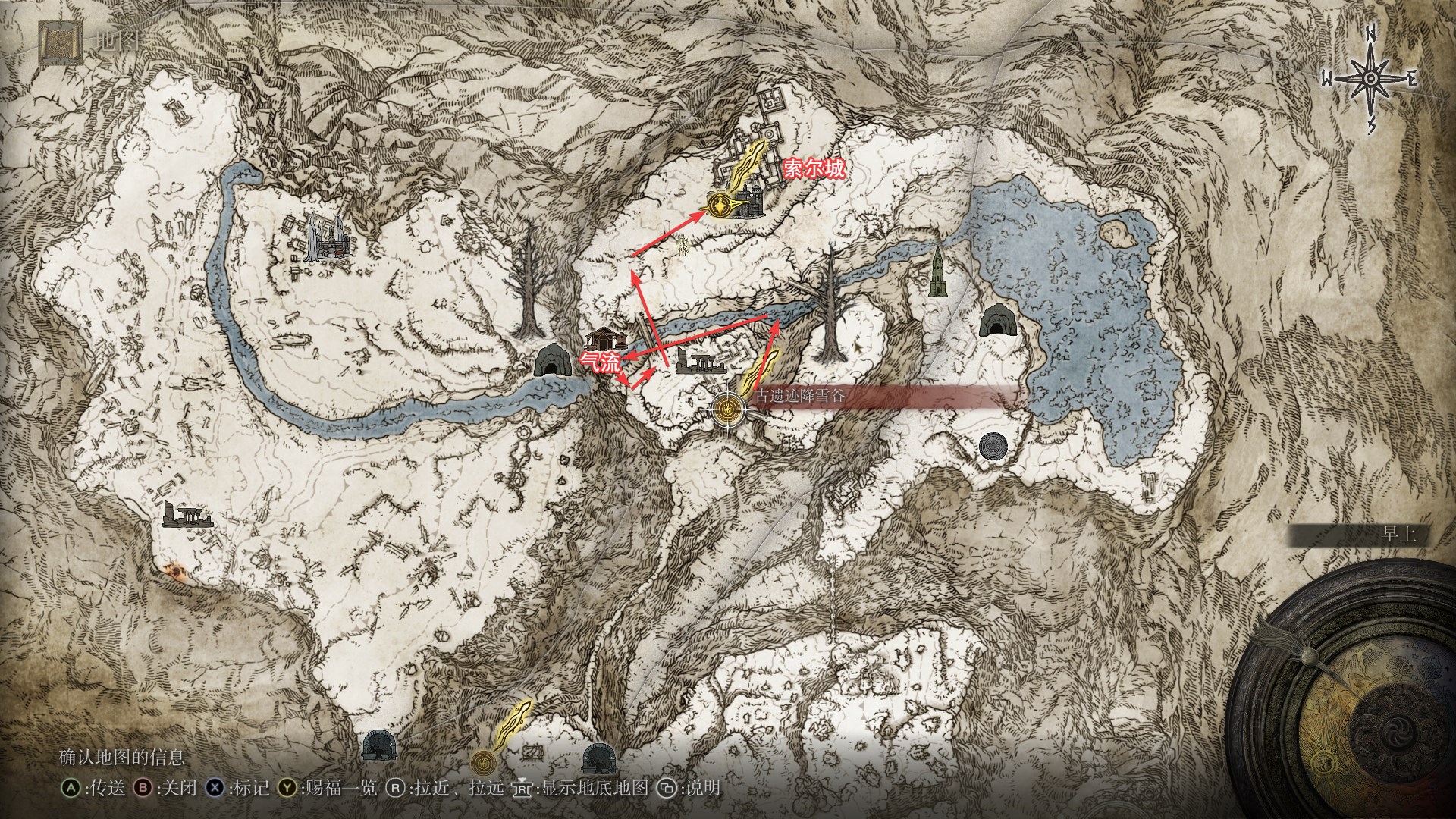 2.来到近黄金树的山丘,向北走来到日荫城,从日荫城(城墙)出发,如图找到女武神的义手,返回山丘,和米莉森对话交出义手。(回去找格威有新魔法和新对话)