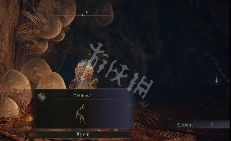 在左侧的尸体上就可以获得免疫角饰品护符(增加90免疫度)。