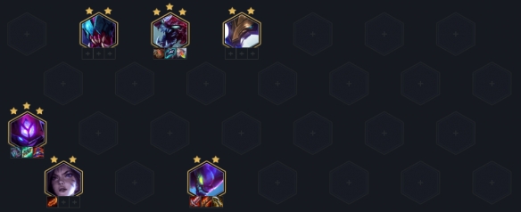 阵容组成:雷克赛(2)、科加斯(3)、阿利斯塔(4)、卡萨丁(1)、玛尔扎哈(3)、卡兹克(4)