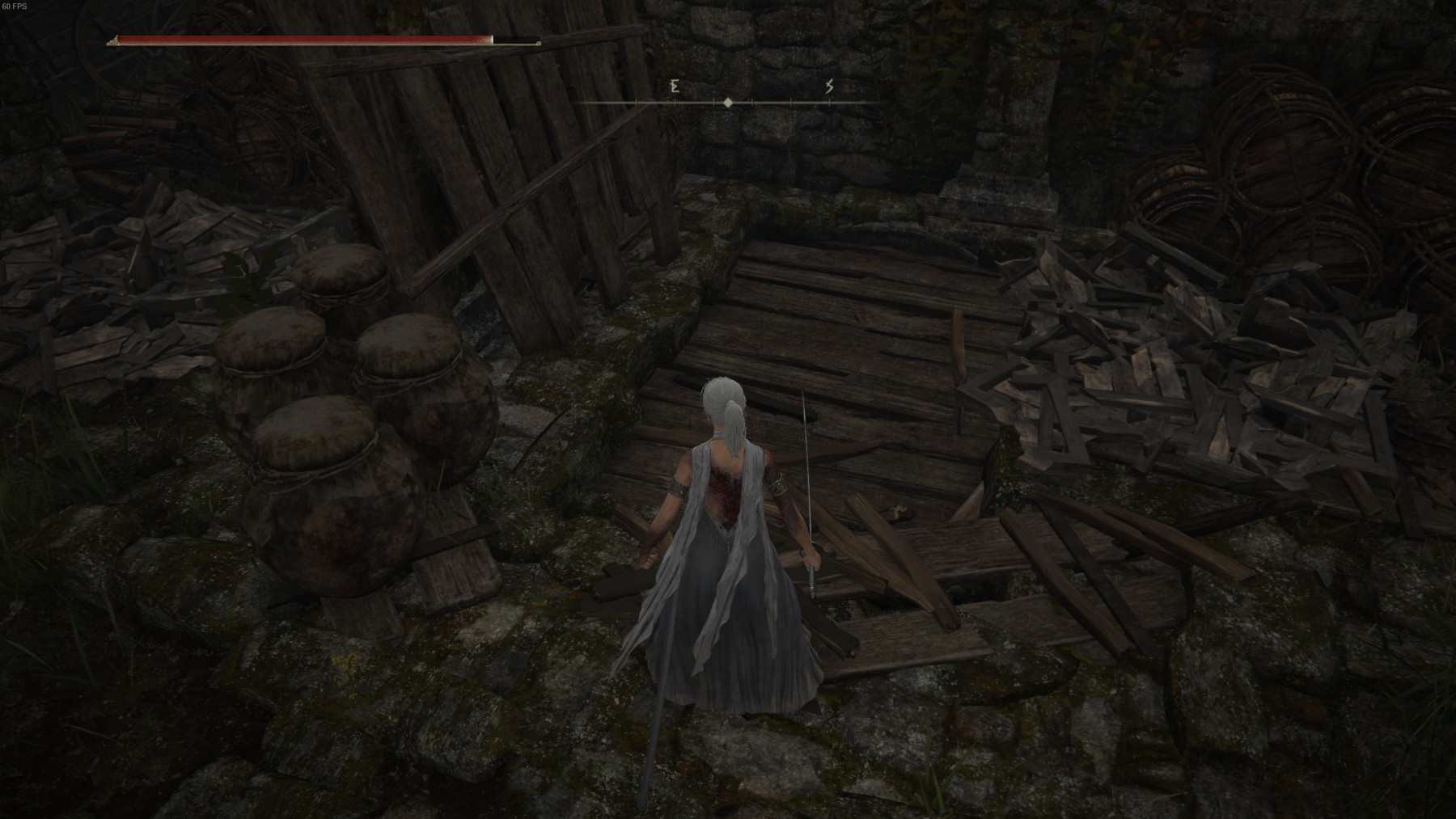 之后立即左转,在这里跳到屋顶再跳下去继续向前,就能看到这口井。