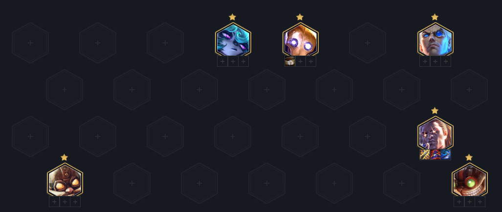 这套阵容的策略的是速七找卢锡安和薇古丝,2-1不搜牌升四,开3约德尔配合2极客等羁绊打前期连胜,装备给EZ先打工,2-3升五抢节奏,最好可以上个机器人开2保镖。